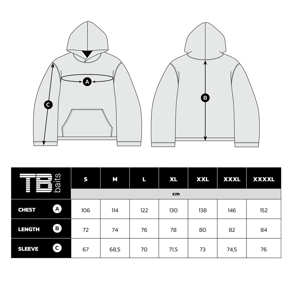 Na přední straně mikiny naleznete černé logo TB Baits. Na zádech je výrazný motiv kapra ukrývajícího se v leknínech. Jedná se o velmi pohodlnou mikinu z moderního prémiového materiálu. Volný střih pro pohodlný pohyb u vody.